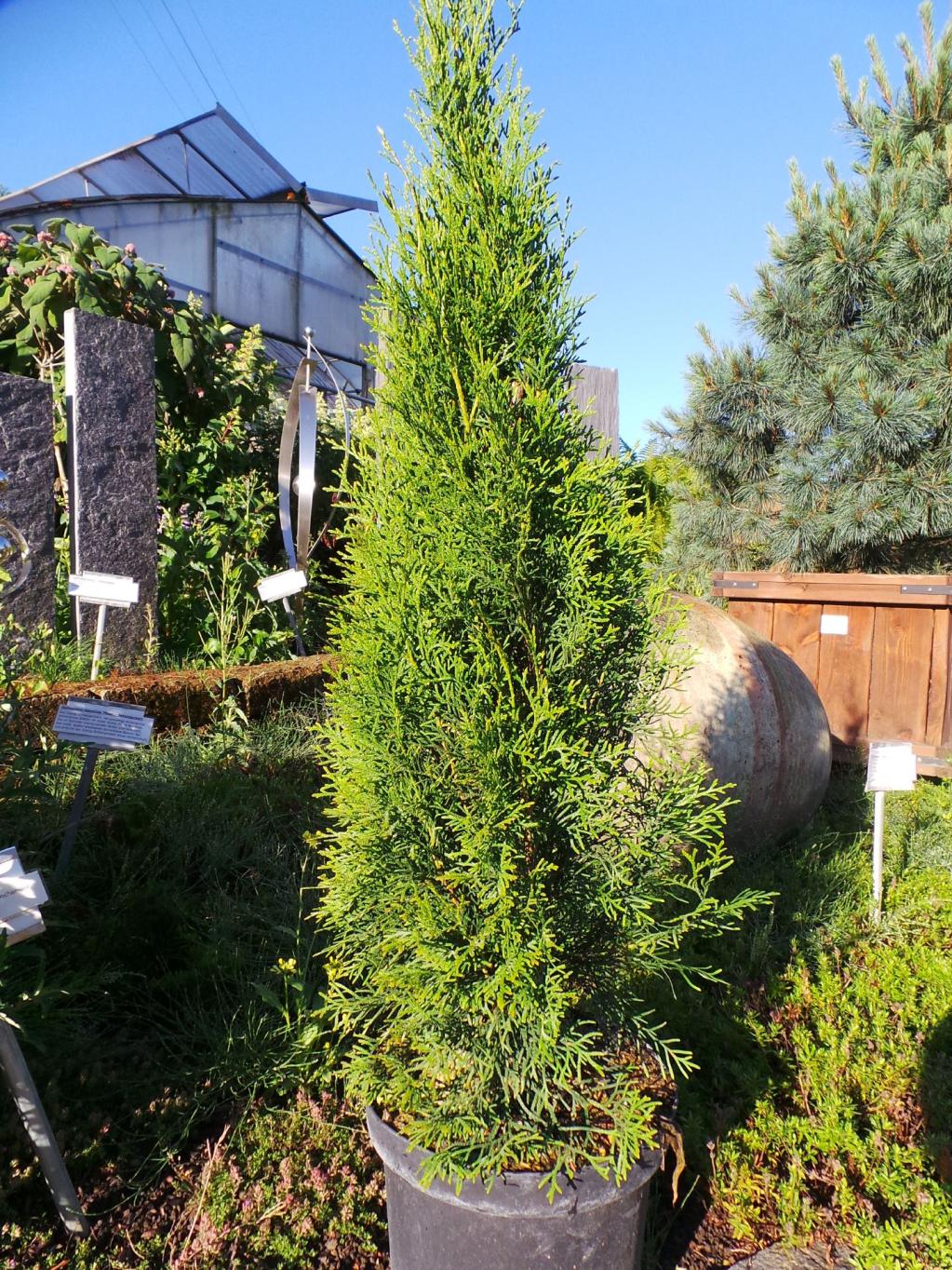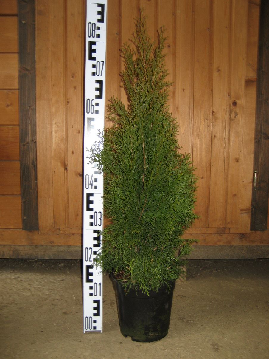 Wuchs: Völlig geschlossener kompakter gleichmässig kegelförmiger Wuchs. Ungeschnitten kann diese Sorte 4-6 m hoch werden und ca. 1-1,5 m breit. Der Jahreszuwachs in der Höhe beträgt durchschnittlich 10-30 cm. Wuchsleistung in 10 Jahren ca. 125-200 cm freiwachsend