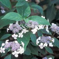 Hydrangea serrata 'Bluebird' Wuchs: Kleiner, breitbuschiger, locker aufrechter Strauch. Grösse: 1 bis 1,5 m hoch und breit. Triebe: Jahrestriebe grün, im Bereich der Nodien rötlich überlaufen (doc...