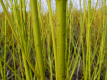 1-1.5m, leicht gewundene Triebe, Rinde gelg braun, sonnig-halbschattig, Staunässeempfintlich, Solitäir, Japanische Gärten.