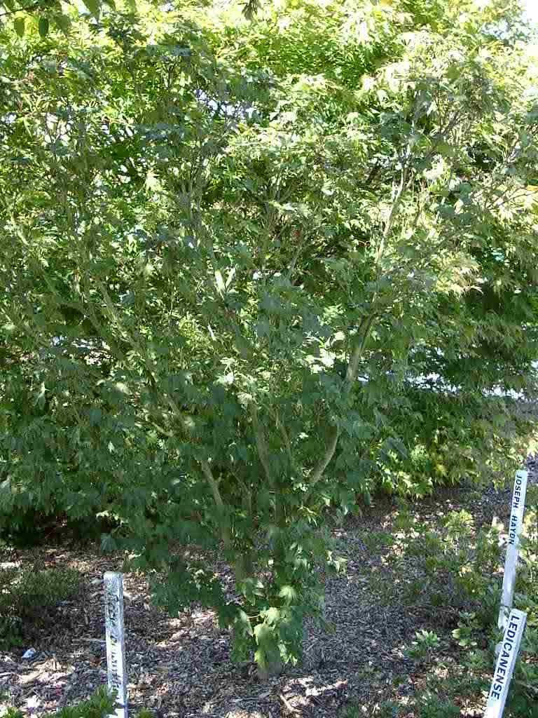 Kleiner Baum, junge Triebe kahl; Blätter 5lappig, unten kahl bis auf einige deutliche Büschel weisser Haare in den Nervenwinkeln kahl, 6-12 cm lang, Lappen breit, grob und einfach gesägt; Blüten gelblich, in schlanken Rispen, Fruchtknoten dicht gelb filzig, Früchte bis 3 cm lang, Flügel waagerecht; China.