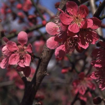 Prunus mume 'Beni-chi-dori' Japanische AprikoseUne Syn: Prunus mume 'Beni-Shidare' / Prunus mume 'Beni-shidon', Prunus mume 'Beni-Shidori "