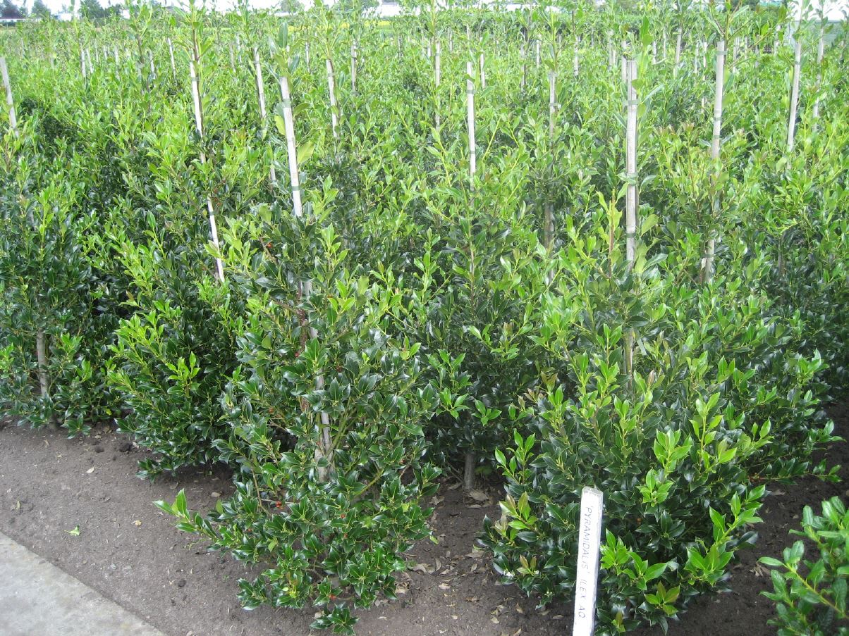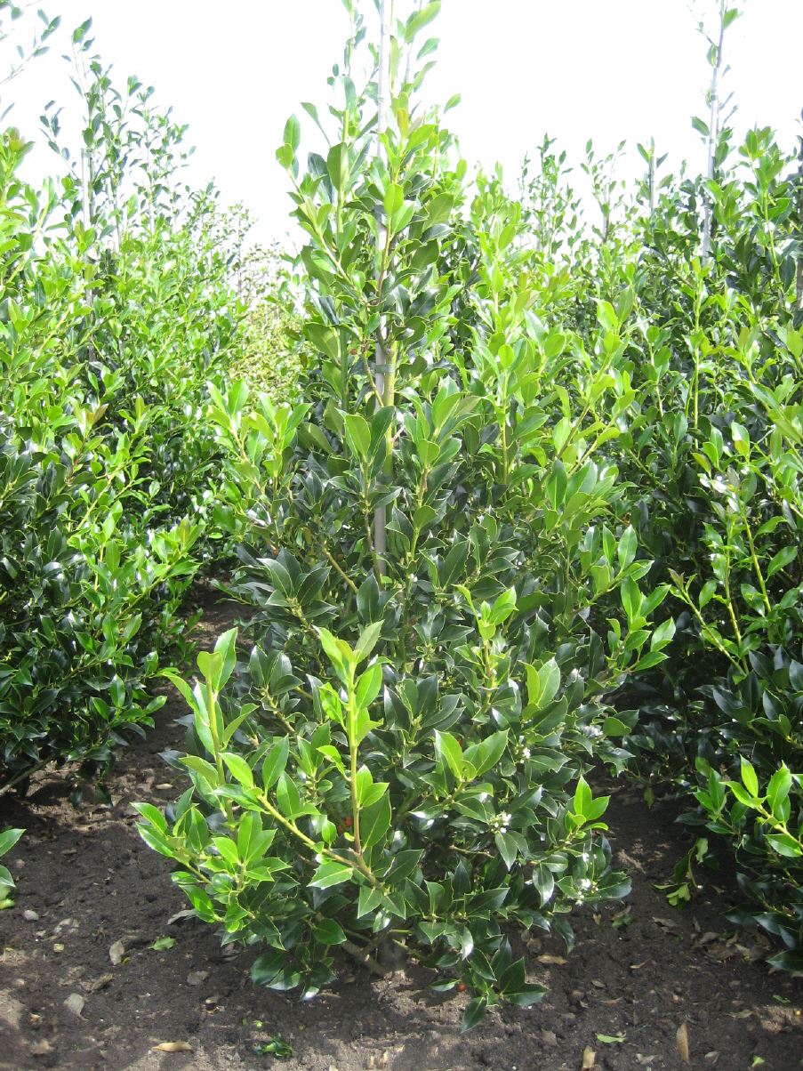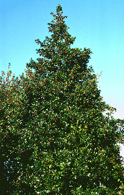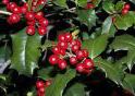Stechpalme / Fruchtende Garten-Hülse 4-6m, Blatt: immergrün, kaum Dornen, Frucht: rot, zahlreich, schnittverträglich, Einzelstand und gemischte Hecken.