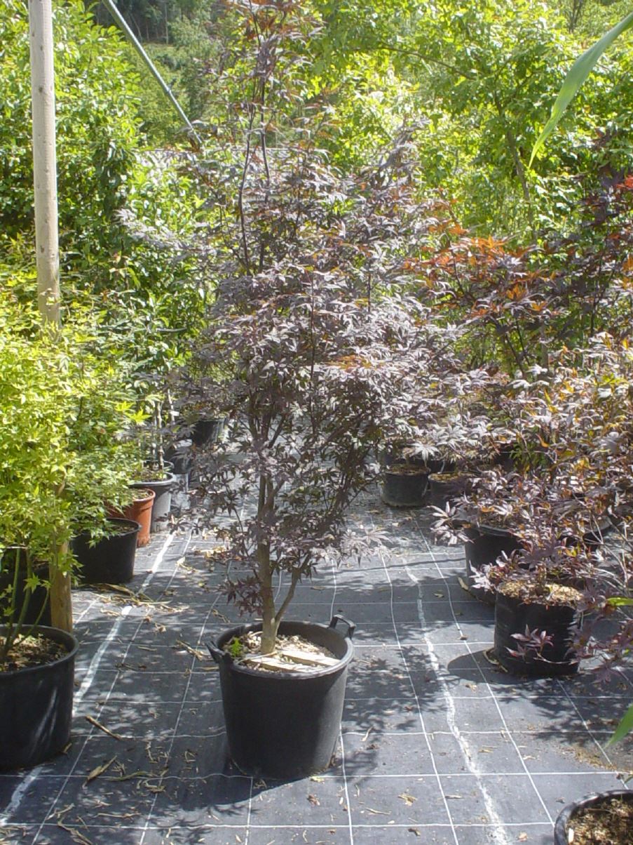 Dunkelroter Fächer-Ahorn 4 m, Blatt: blutrot, durchlässige humose Böden, als Solitär.