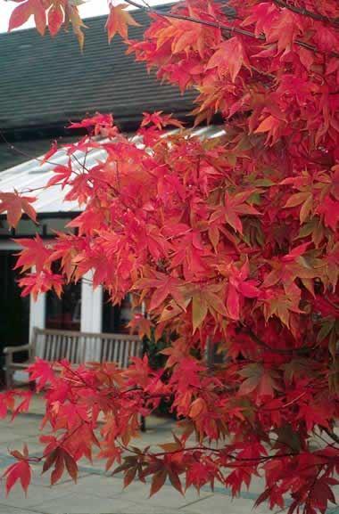 Japanischer Fächerahorn Osakazuki 3 - 4 m, Blatt: gelappt, kräftig grün, schöne Herbstfärbung,durchlässige humose Böden.