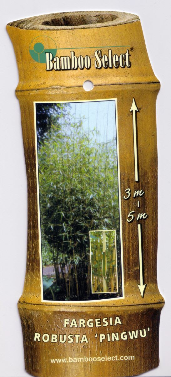 Ist eine Selektion aus der chinesischen Art F. robusta. Der Horst bildende Bambus kann zu den "Hohen Bambus" gezählt werden, er wird mehr als 3 Meter hoch. Neue Triebe erscheinen im April, diese Tatsache lässt F. robusta 'Pingwu auch im zeitigen Frühjahr besonders attraktiv aussehen. Besonders attraktiv sind die weissen, regelmässig an den Trieben sitzenden Halmscheiden, sie bilden zu den jungen grünen Halmen einen schönen Kontrast.